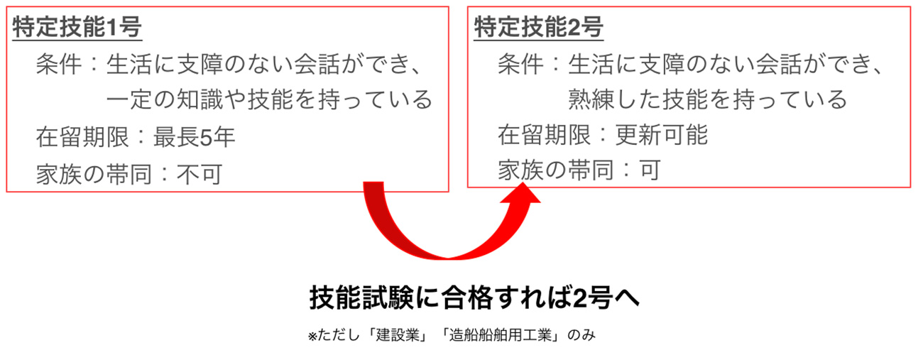 新設された「特定技能」は1号と2号の2段階構成になっています。