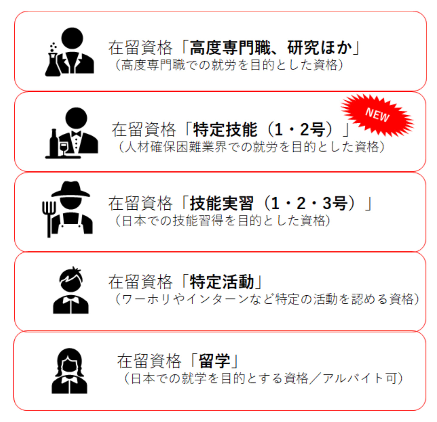 改正入管法で変わる、在留資格の中身