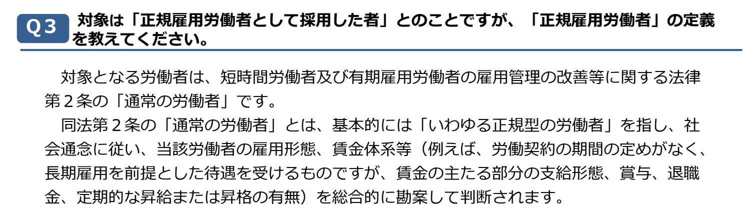 注意したいのが、正規雇用(短時間正社員含む)に限るということ。正規雇用の定義が少し曖昧ではあるのですが、期間を定めない雇用契約を締結している正社員(時短勤務も含む)と考えてよいかと思います。よって、有期雇用契約の契約社員、パート、アルバイト、あるいは雇用関係にない派遣社員、業務委託メンバーなどは計算に含めません。
