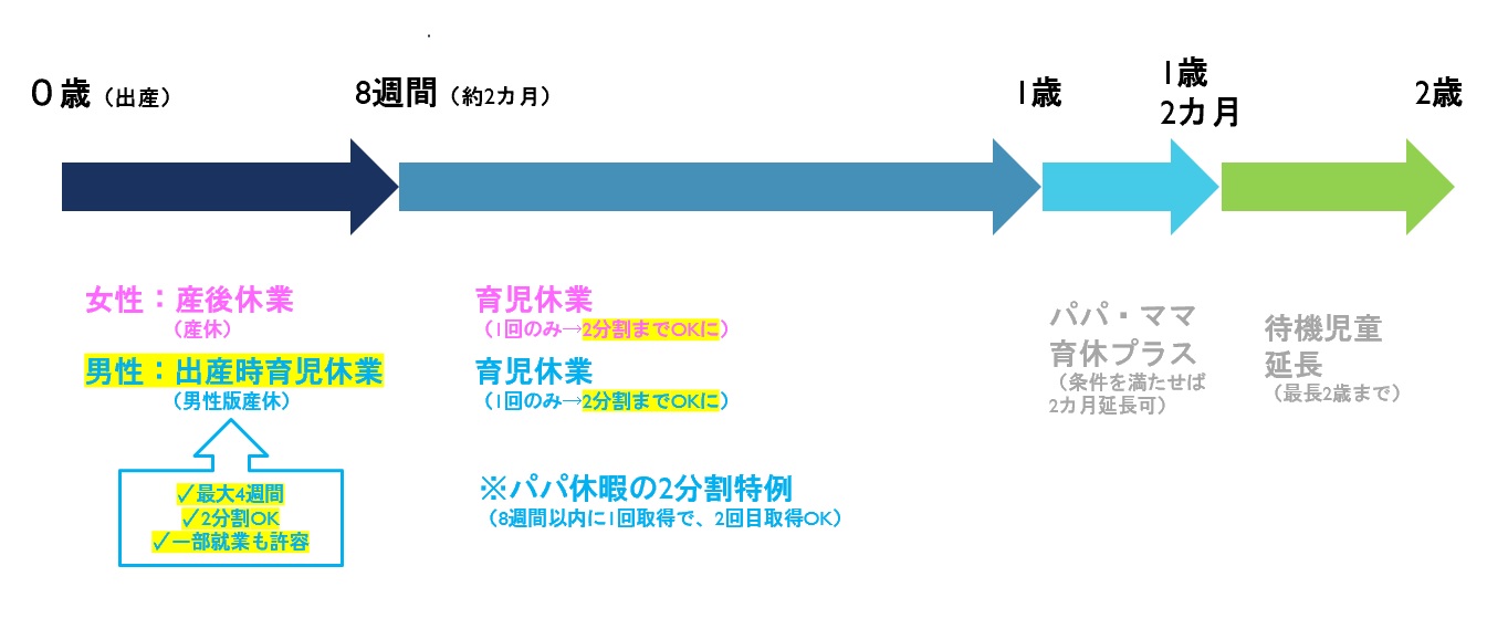 - 産後8週間の中で、2分割取得が可能
