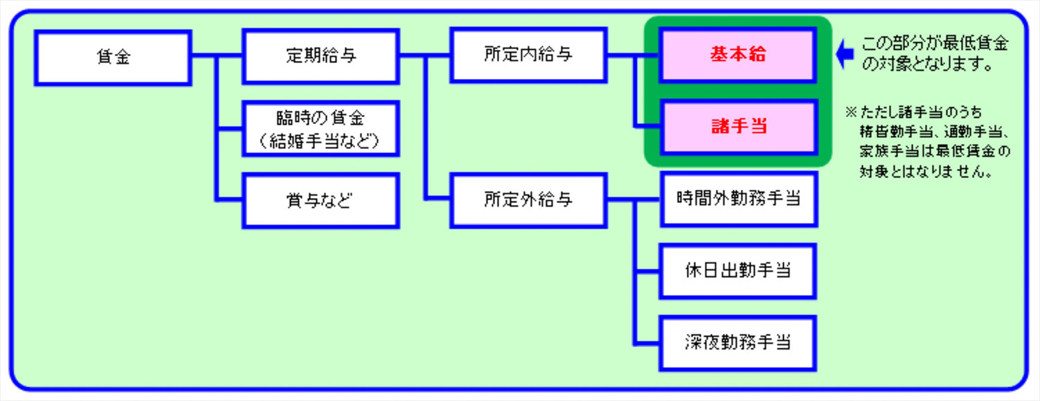 最低賃金の計算対象となるのは、労働者に対して1カ月ごとに支払われる基本的な賃金(基本給や毎月支払われる固定の手当)のみであり、年間の総支給額ではありませんので注意してください。
