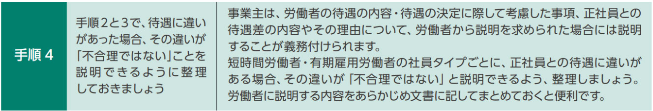手順3で整理した待遇差の理由について、合理性があるかどうかを確認します。