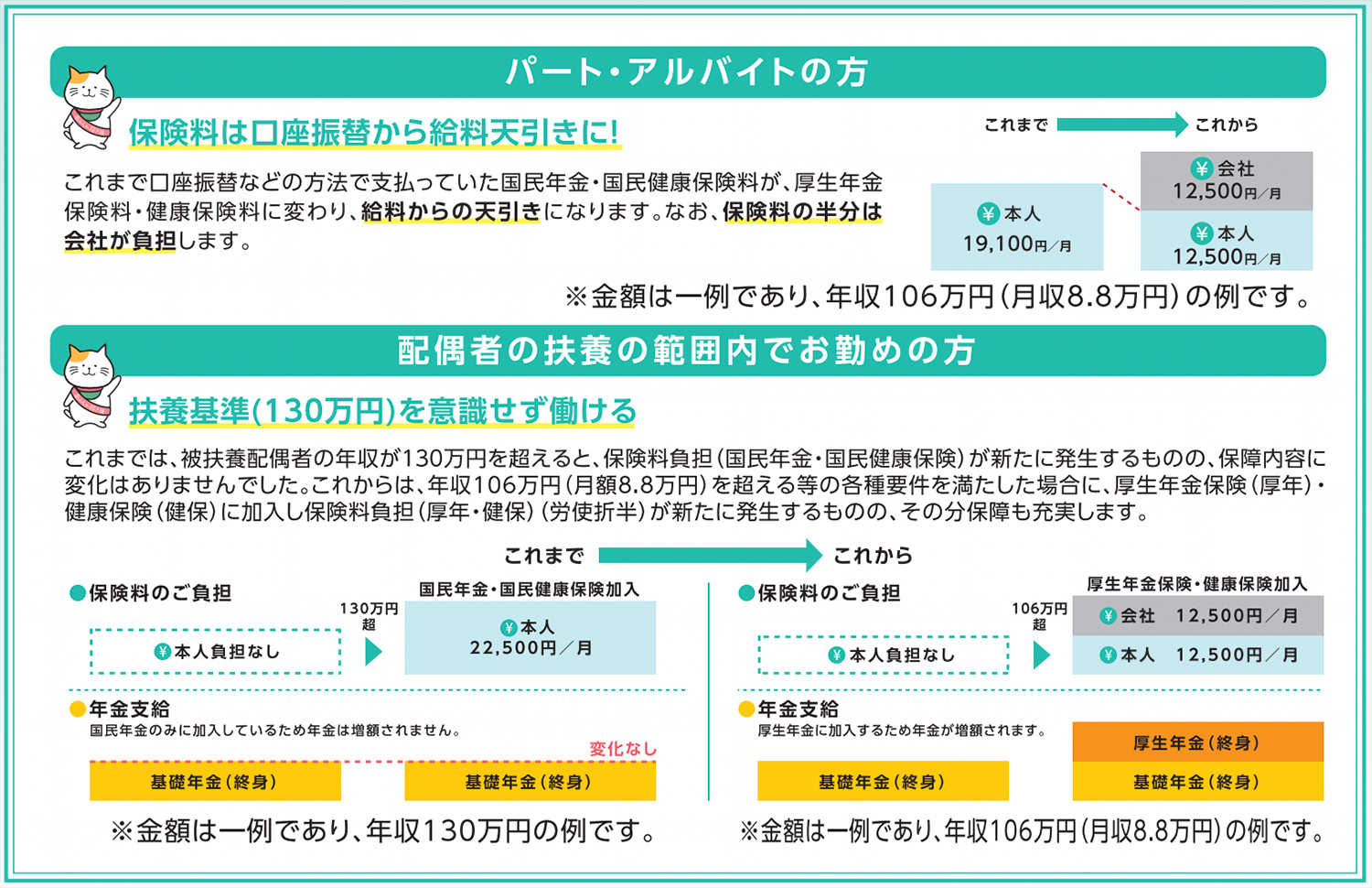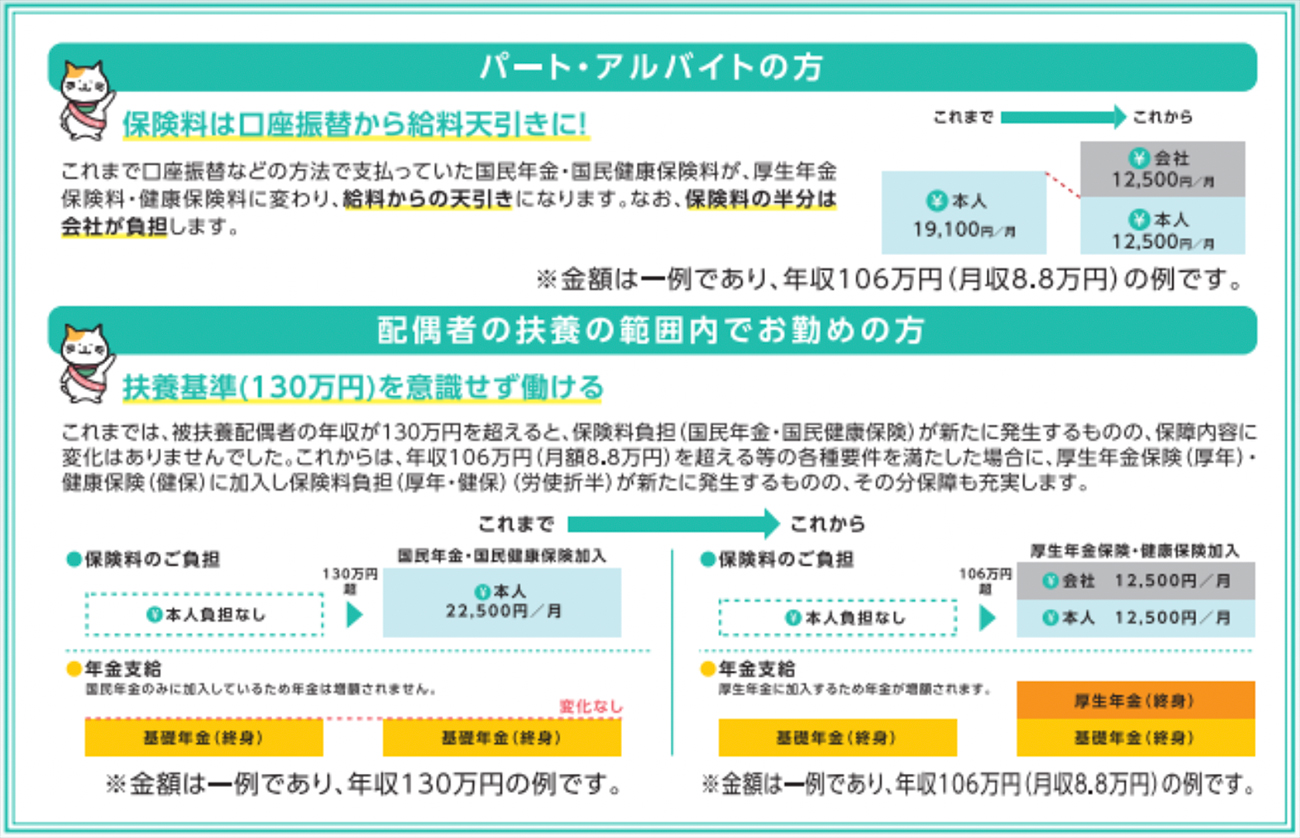 ※なおダブルワークをされている方などで、他社で厚生年金・健康保険に加入している方は、今回の法改正による対応は必要ありません。